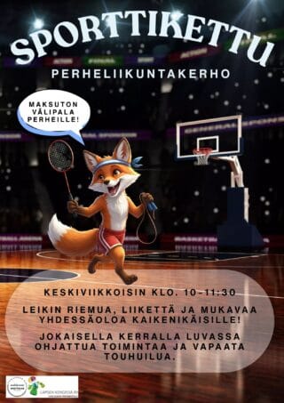 Sporttikettu -perheliikuntakerho tarjoaa koko perheelle iloisen ja rennon tavan liikkua yhdessä – ilman suorituspaineita. Kerho kokoontuu keskiviikkoisin erilaisiin sisä- ja ulkoliikuntaympäristöihin perheiden toiveiden mukaan.